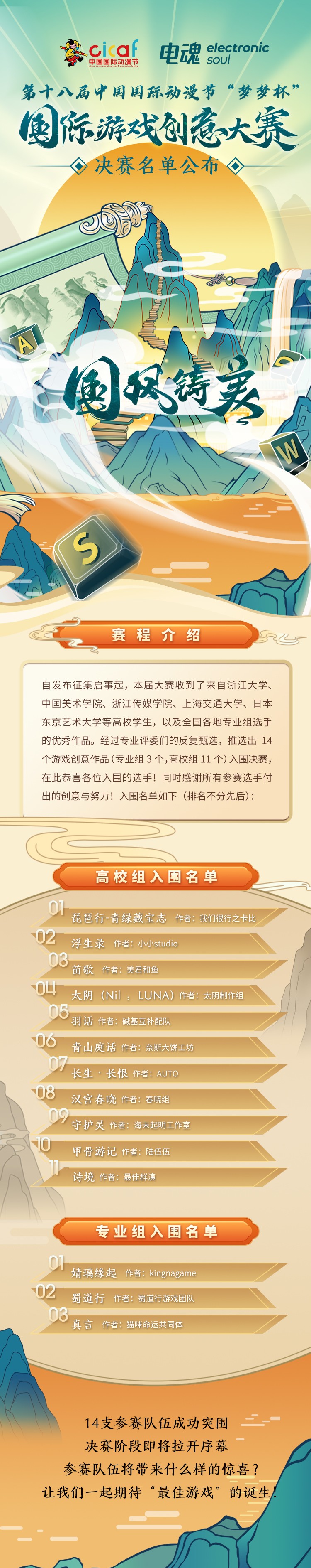 第18屆中國國際動漫節“夢夢杯”國際游戲創意大賽決賽名單出爐!
